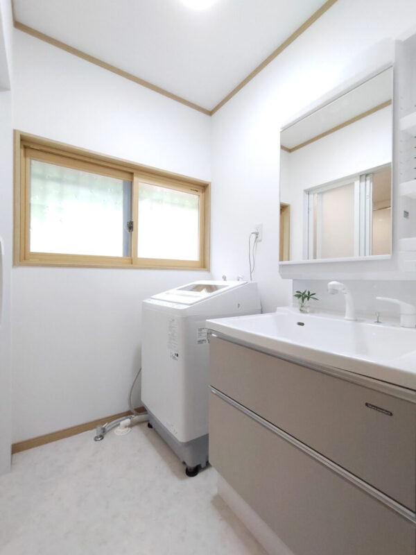 洗面台は、洗面ボウルが大きくなり、セーターやダウンも洗えて、とても便利です!収納棚を置かなくても、全て洗面台に入れられたので、洗面所を広く使えるようになりました。