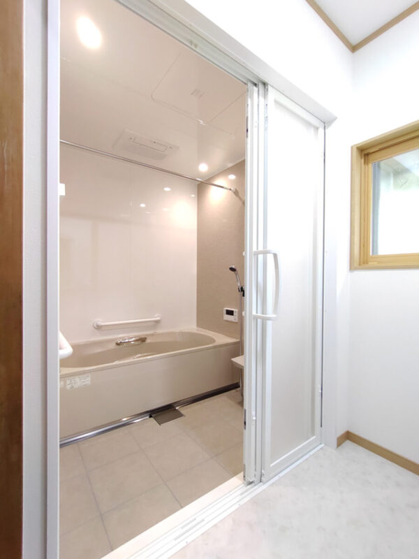 ・将来万が一、車いすになったり介護が必要になった時に、お風呂の入り口が広い方が入りやすいかと思い、3枚引き戸にしました。